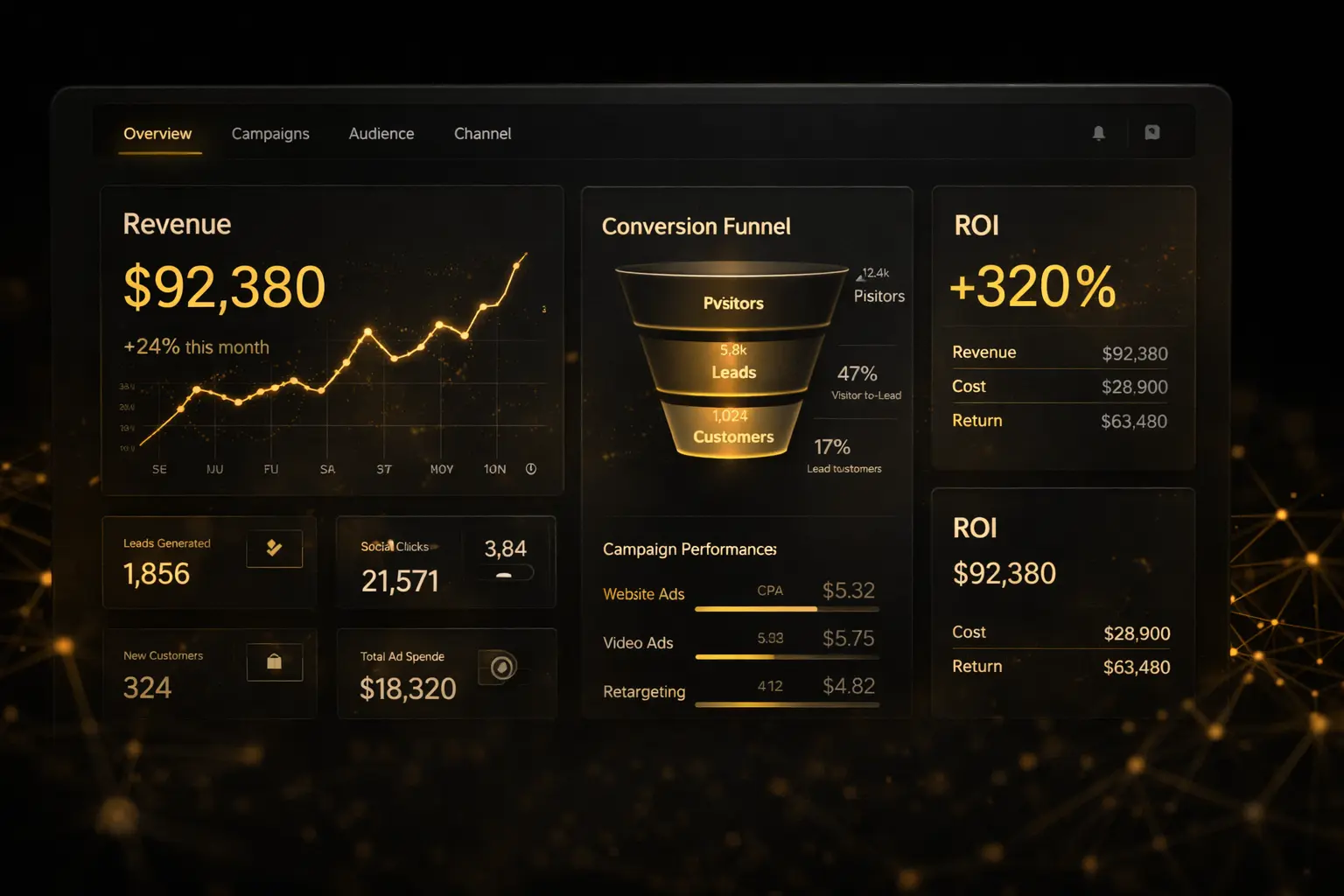 Analytics and reporting that connect marketing activity to revenue. No vanity metrics, no guesswork — just the numbers that drive decisions.